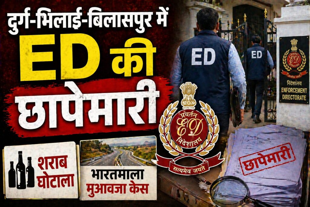 Chhattisgarh ED Raid: दुर्ग-भिलाई-बिलासपुर में बड़ी छापेमारी, शराब घोटाले और भारतमाला मुआवजा केस से जुड़े तार