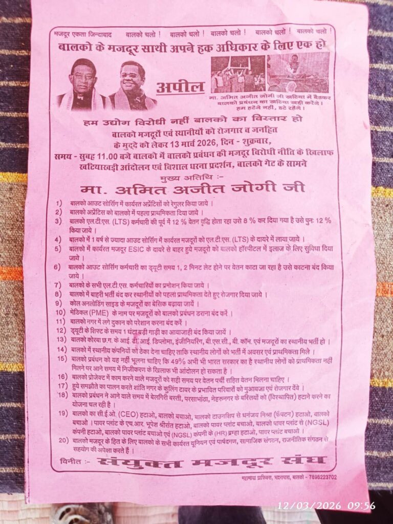 इस विवाद को लेकर जनता कांग्रेस छत्तीसगढ़ (जे) के नेता अमित जोगी पहले ही BALCO प्रबंधन पर निशाना साध चुके हैं। उन्होंने कंपनी के नोटिस को “तुगलकी फरमान” बताते हुए कहा था कि कॉर्पोरेट प्रबंधन मजदूरों की आवाज दबाने की कोशिश कर रहा है।
